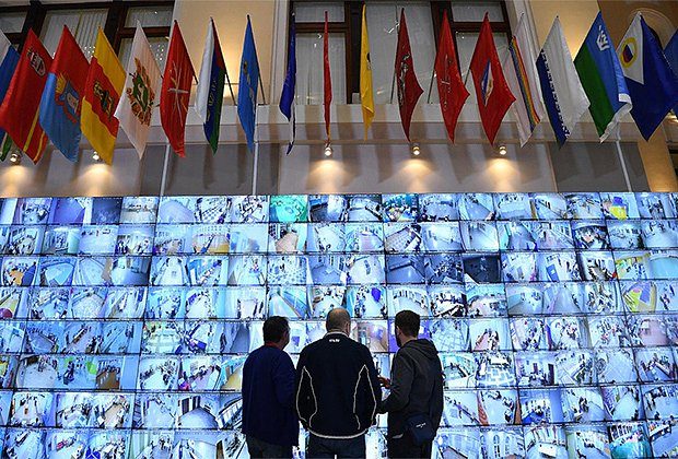 Мониторы в информационном центре Центральной избирательной комиссии (ЦИК) России