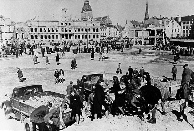 Рига в первые дни после освобождения Красной армией от немцев