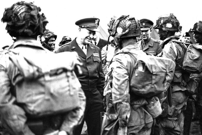 Дуайт Д. Эйзенхауэр с американскими солдатами перед операцией «Нептун», 6 июня 1944 года
