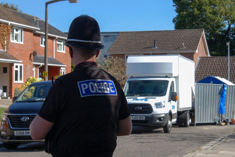Сотрудник полиции у дома, где проживал Сергей Скрипаль, Лондон, 2018 год