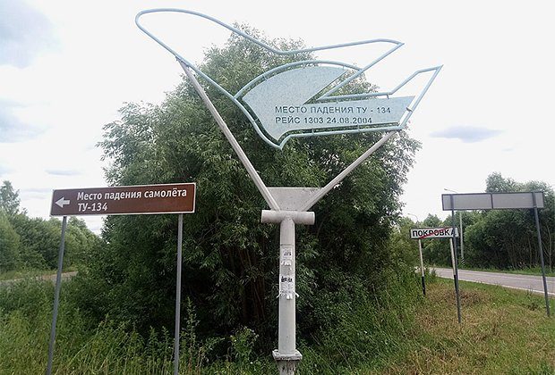 Дорожный указатель на место катастрофы Ту-134 в Тульской области