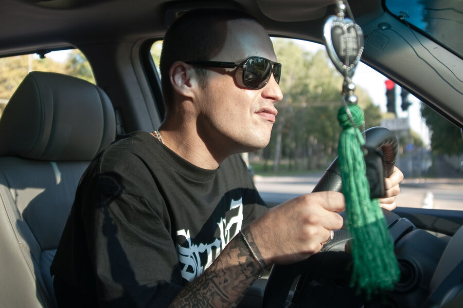 Рэпер Гуф (Алексей Долматов) в своем автомобиле, 2011 год
