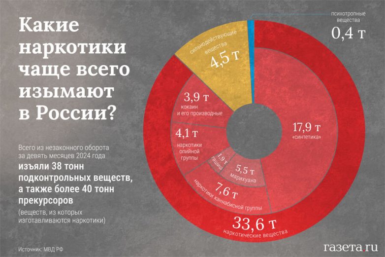 Кроме того, из незаконного оборота изъято более 40 тонн веществ, из которых изготавливаются наркотики, — прекурсоров.