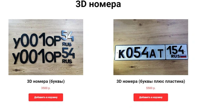 Так называемые 3D-номера изготавливают иначе. В большинстве случаев нет необходимости делать дубликат, потому что для модификации используют специальные накладки в виде числовых и буквенных обозначений. Стоимость услуги — от 650 до 3500 рублей. Накладку изготавливают из пластика и гарантируют её устойчивость к перепадам температуры, сильному напору воды и высокой скорости. При этом некоторые продавцы отмечают, что их продукция сувенирная, поэтому каждый водитель устанавливает накладку на свой страх и риск.