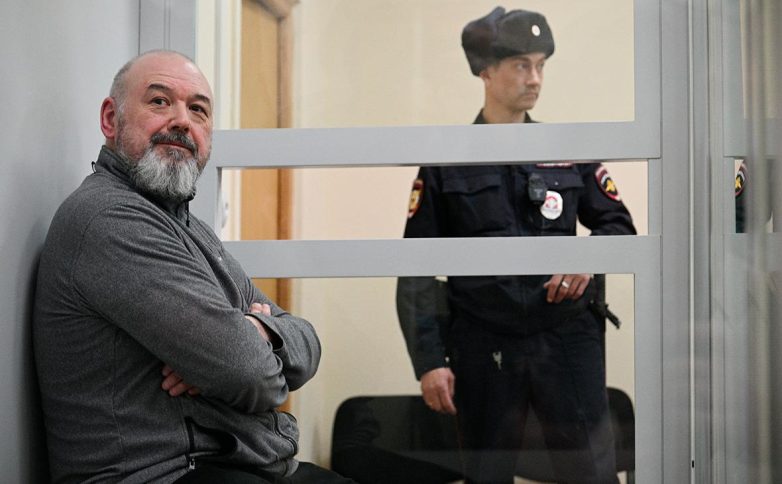 Александр Оглоблин во время рассмотрения дела о получении взятки в 235-м гарнизонном военном суде в Москве, март 2025 года
