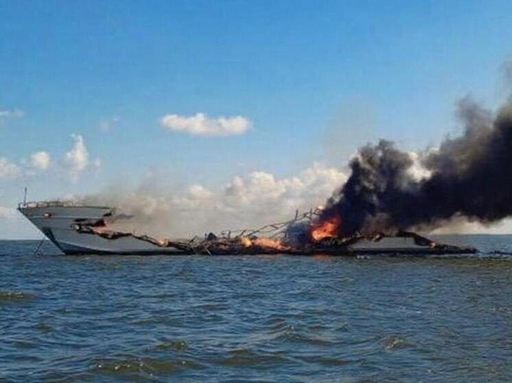 Управление региональной безопасности опубликовало видеозапись с охваченной огнем «Мечтой». На кадрах видно, что несколько человек ожидали спасателей за бортом.