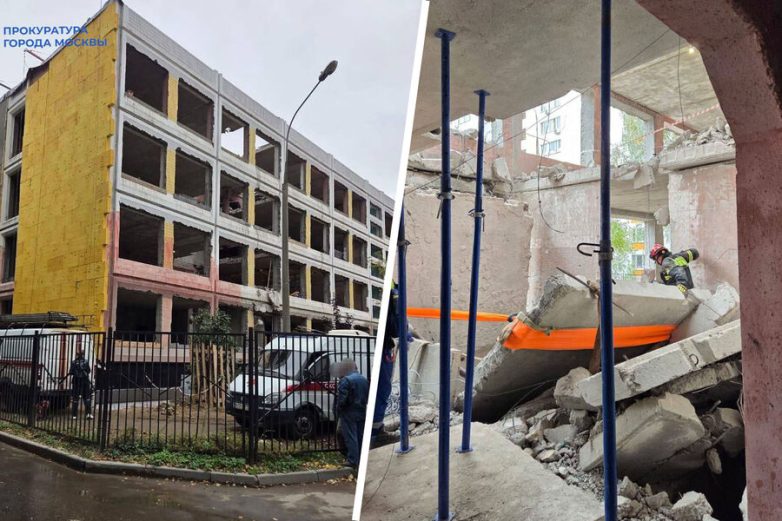 Двух рабочих придавило насмерть. В Москве обвалились четыре этажа школы