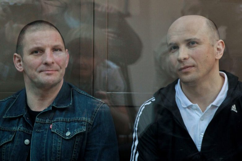 Сергей Буторин и Марат Полянский (слева направо) в зале заседаний Московского городского суда, 2011 год