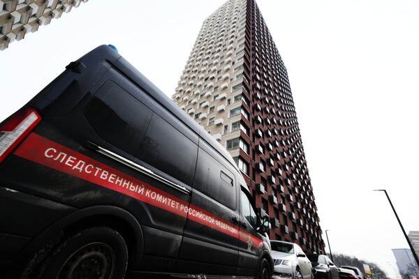 Автомобиль Следственного комитета РФ у дома, где было совершено покушение на убийство генерала Минобороны РФ Владимира Алексеева, 6 февраля 2026 года