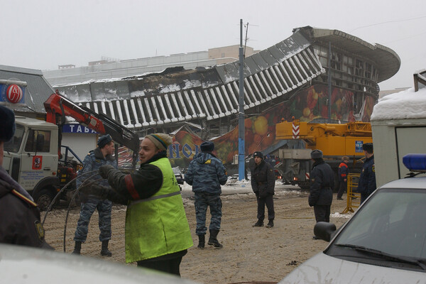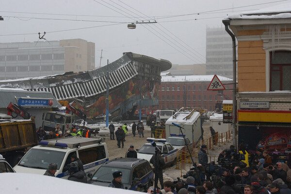 На месте обрушения кровли Басманного рынка, 23 февраля 2006 года